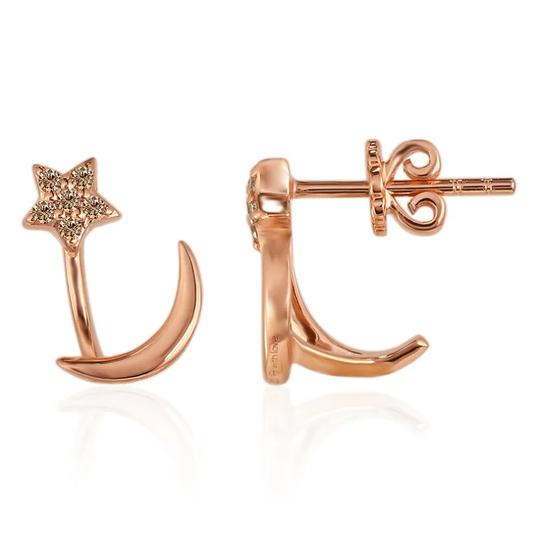 Umarmen Sie die Sterne mit diesen himmlischen Rose de France 9K Gold Ohrringen, die aus Australien stammen. Diese einzigartigen Ohrringe sind mit Sternen- und Mondmotiven verziert, die mit funkelnden SI1-Diamanten mit einem Gesamtgewicht von 0,1 ct besetzt sind und in warmem 375er Gold mit einem Gewicht von ca. 2,11 g gefasst sind. Diese Ohrringe sind ideal für alle, die ihre Faszination für den Kosmos gerne tragen und verleihen jedem Outfit einen Hauch von Magie. Ein perfektes Accessoire sowohl für formelle Anlässe als auch für zwanglose Sternbeobachtungsnächte.