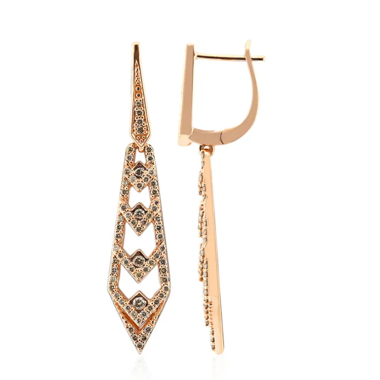 Entdecken Sie die Anziehungskraft unserer Ohrringe aus 9 Karat Gold, die mit einer Konstellation aus SI1 Argyle-Rose de France-Diamanten von insgesamt 0,921 ct geschmückt sind. Diese 48 mm großen, geometrischen Tropfenohrringe stammen aus den berühmten australischen Argyle-Minen und fangen das Licht in einem brillanten Tanz ein. Jede Argyle-Facette, die sorgfältig geschliffen wurde, bildet eine Symphonie des Funkelns vor einem warmen, roségoldenen Hintergrund. Durch die Ausgewogenheit von Eleganz und Opulenz eignen sich diese Ohrringe sowohl für den eleganten Tag als auch für den eleganten Abend. Sie sind ein exquisites Geschenk oder eine zeitlose Ergänzung Ihrer eigenen Sammlung, denn sie vereinen Handwerk und Verführung.