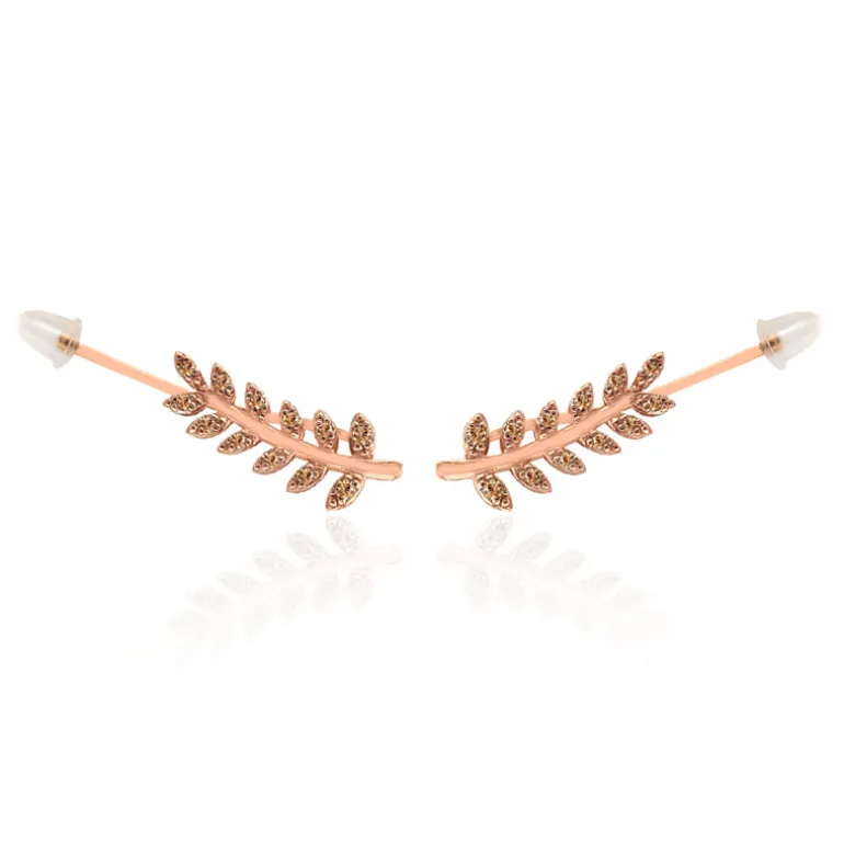 Entdecken Sie die botanische Eleganz dieser Ohrringe aus 9 Karat Roségold, die mit einem zarten Blattmotiv verziert sind. Jeder Ohrring funkelt mit 24 Argyle-Rose de France-Diamanten im Brillantschliff SI1 von insgesamt 0,146 Karat aus den renommierten australischen Minen. Die runden Steine im Brillantschliff fangen das Licht wunderschön ein und machen diese Ohrringe zu einer perfekten Wahl, um jedem Outfit einen Hauch von Raffinesse zu verleihen. Zelebrieren Sie die Anmut der Natur mit diesem exquisiten Paar, das sowohl tagsüber als auch am Abend bezaubert.