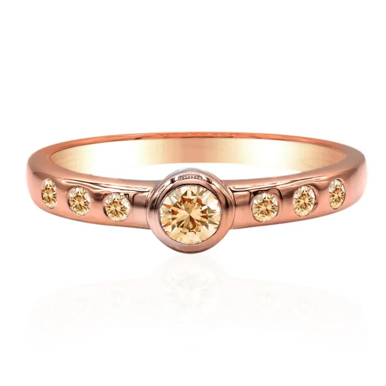 Dieser atemberaubende Ring aus 9 Karat Roségold mit einem Gesamtgewicht von 0,33 Karat strahlt Anmut und Eleganz aus. Er ist mit sieben aus Australien stammenden Argyle-Rose de France-Diamanten (SI1) besetzt, die in einem harmonischen Muster gefasst sind, das einen brillanten Mittelstein (0,18 Karat) zur Geltung bringt. Die Roségoldfassung unterstreicht die warmen, hellrosa Farbtöne der Diamanten und verleiht ihm einen femininen Touch, der sich perfekt für das Tragen am Tag und am Abend eignet. Ob zu einem Arbeitsoutfit oder einem Kleid auf einer Soiree – dieser Ring verleiht jedem Ensemble einen Hauch von Raffinesse.