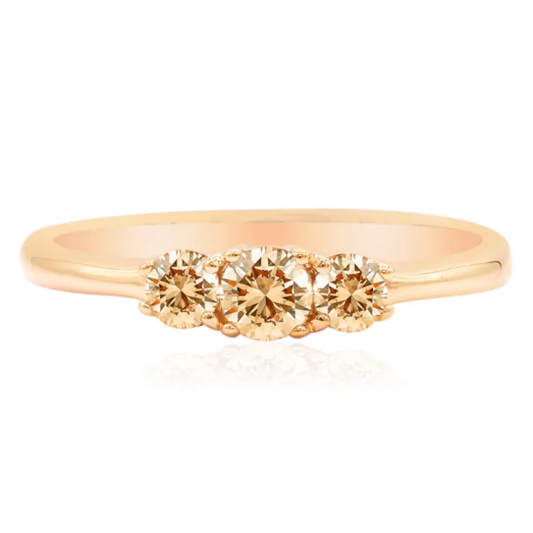 Entdecken Sie die Eleganz dieses Rings aus 14-karätigem Gold, der ein Trio funkelnder Argyle Rose de France-Diamanten aus den berühmten australischen Minen präsentiert. Mit einem Gesamtkaratgewicht von 0,375 ct ist jeder Diamant meisterhaft geschliffen und strahlt Brillanz aus. Die runden Brillanten mit einem Durchmesser von ca. 3,5 mm und 3 mm sitzen anmutig auf einem 1,99 g schweren, glatten Goldband und bieten einen zeitlosen Look, der sich für das tägliche Tragen oder besondere Anlässe eignet. Kombinieren Sie diesen subtilen und doch fesselnden Ring sowohl mit legerer als auch mit formeller Kleidung für einen Hauch von Raffinesse.