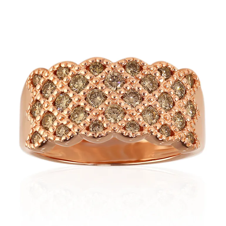 Lassen Sie sich vom Glanz unseres Rings aus 14 Karat Roségold verzaubern, der mit einer Konstellation australischer Argyle Rose de France-Diamanten besetzt ist. Das Gesamtgewicht der Edelsteine von 0,648 ct. erstrahlt durch den brillanten Rundschliff von 28 sorgfältig ausgewählten Diamanten, die bei jeder Bewegung einen Schimmer von Licht abgeben. Mit einer beeindruckenden Größe von 20 x 20 mm verbindet dieser Ring die Anmut traditioneller Handwerkskunst mit moderner Eleganz. Perfekt für besondere Abende oder als funkelndes Schmuckstück für den täglichen Luxus.