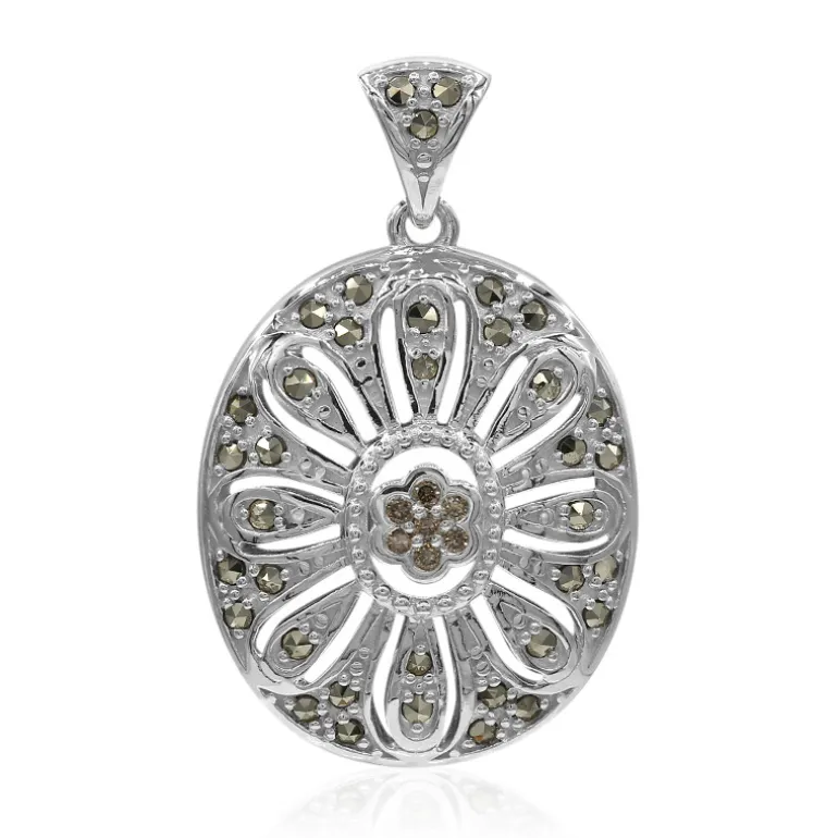 Lassen Sie sich von der zeitlosen Schönheit dieses Silberanhängers mit Rose de France und Markasit im Vintage-Stil verzaubern. Er wurde mit Sorgfalt gefertigt und zeichnet sich durch ein zartes Arrangement aus SI1 Argyle-Rose de France-Diamanten aus Australien und glänzenden Markasit-Steinen aus Rumänien aus, die alle in 925er Sterlingsilber mit einem Gewicht von ca. 5,4 g gefasst sind. Das filigrane Design erinnert an die Eleganz einer vergangenen Ära und eignet sich perfekt, um Ihre Abendgarderobe zu verschönern oder Ihrem Alltagsoutfit einen Hauch von Eleganz zu verleihen.