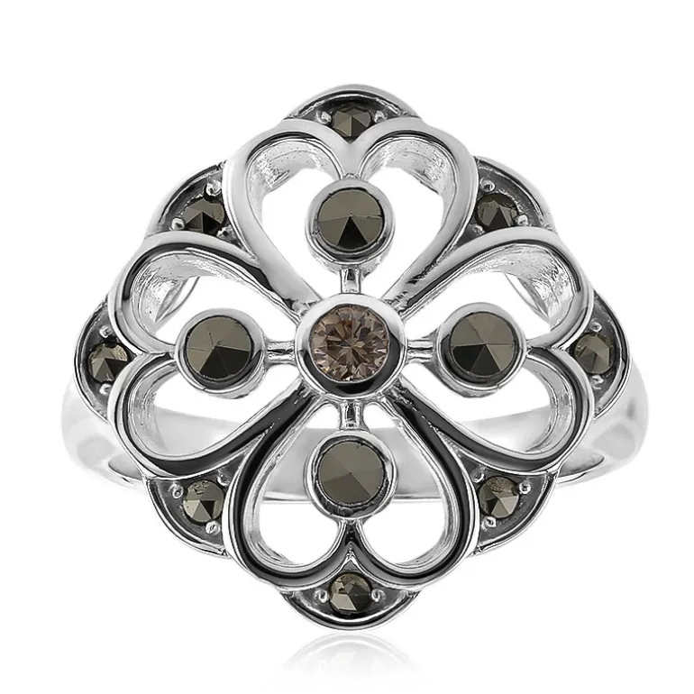 Schicker Argyle Rose de France & Markasit Silber Ring