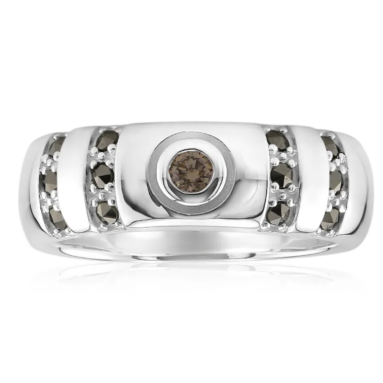 Dieser schicke SI1 Argyle Rose de France Ring besticht durch einen atemberaubenden 0,058ct Argyle-Diamanten aus Australien, der inmitten eines Feldes von 12 österreichischen Markasiten von insgesamt 0,156ct gefasst ist. Der Ring aus hochwertigem 925er Sterlingsilber mit einem Gewicht von ca. 4,2 g misst 20 x 20 mm und bringt den Brillanten im Rundschliff und die umliegenden Markasite in ihrer ganzen Pracht zur Geltung. Er ist ideal, um jedem Outfit einen Hauch von Eleganz zu verleihen und eignet sich sowohl für legere als auch für formelle Anlässe.