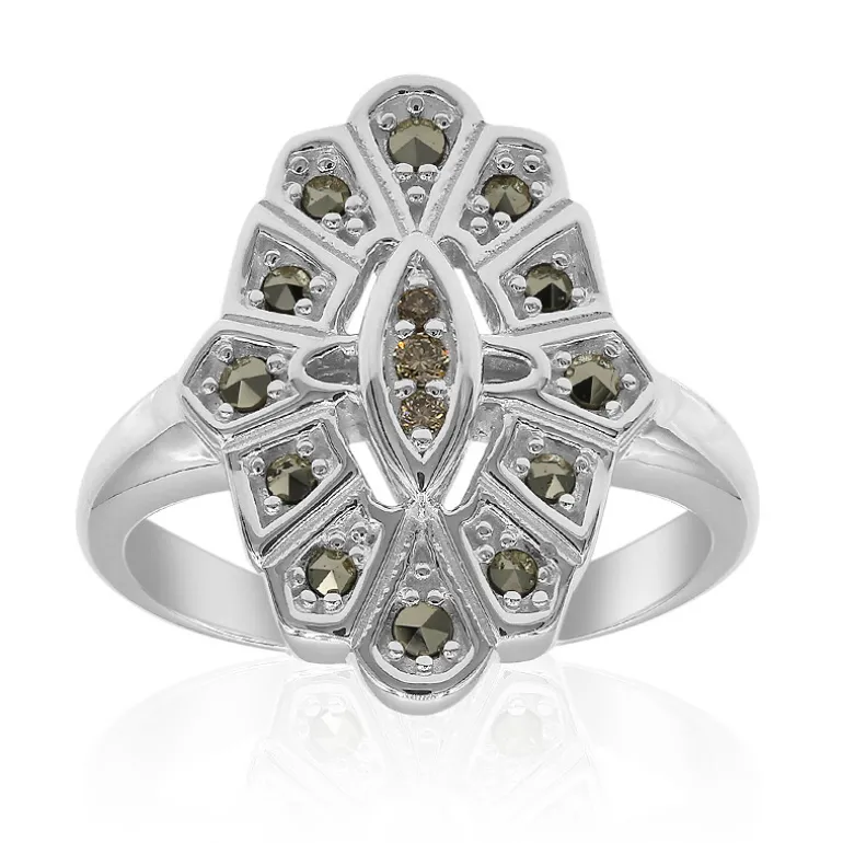 Schicker Argyle Rose de France Silberring, Markasit-Akzente