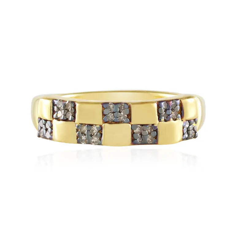 Dieser exquisite Ring besteht aus 28 champagnerfarbenen Diamanten SI1 mit insgesamt 0,126 Karat, die in luxuriöses vergoldetes 925er Sterlingsilber gefasst sind. Das elegante Schachbrettmuster verleiht jedem Outfit einen modernen Touch. Perfekt für abendliche Anlässe oder um Ihrem Alltagslook einen raffinierten Glanz zu verleihen. Kombinieren Sie ihn mit passenden goldenen Accessoires für ein schickes und stimmiges Ensemble.