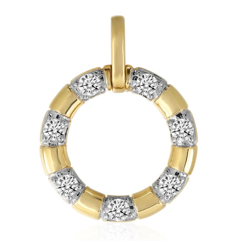 Entdecken Sie die zeitlose Eleganz dieses Anhängers aus 9 Karat Gold, der mit 7 funkelnden Diamanten der Reinheit SI1 von insgesamt 0,315 Karat besetzt ist. Jeder Stein wurde mit einem Präzisionsschliff in eine runde Brillantform gebracht und misst ca. 2,3 mm, um seinen strahlenden Glanz zu maximieren. Der Kontrast zwischen dem goldenen Farbton und den glitzernden Diamanten macht dieses Schmuckstück perfekt, um jedem Ensemble einen Hauch von Raffinesse zu verleihen. Dieser Anhänger ist ideal für den Übergang vom Tag zum Abend und kann sowohl im Büro als auch bei einem Abendessen getragen werden.