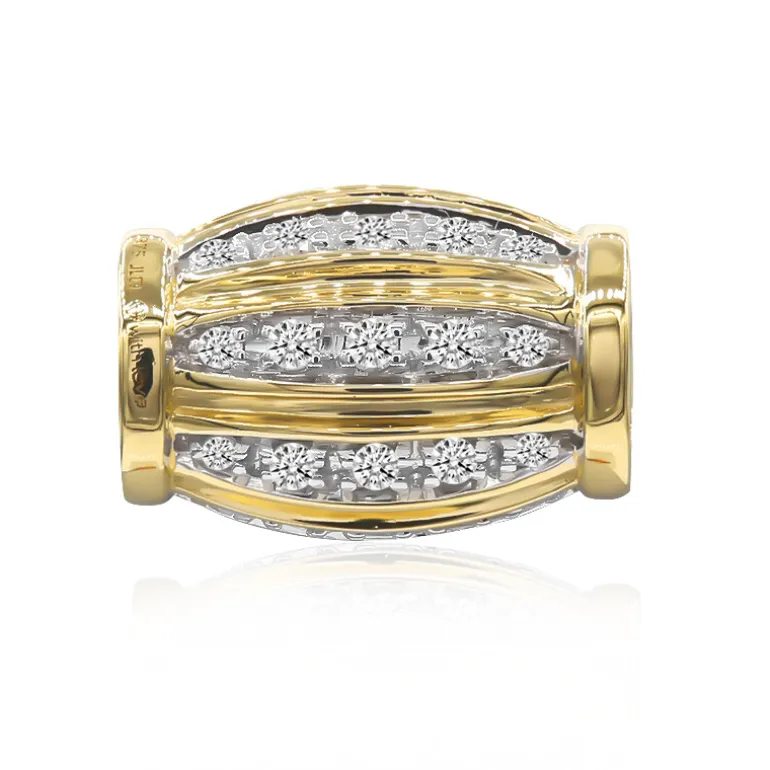 Entdecken Sie die Faszination unseres gestreiften Diamantanhängers, bei dem das Strahlen von 40 Diamanten SI1 (G) mit insgesamt 0,293 Karat einen brillanten Kontrast zum warmen 9-karätigen Gold bildet. Die Diamanten im runden Brillantschliff sind sorgfältig in ein elegantes Streifendesign gefasst, das sich über den 9 x 12 mm großen Anhänger ausbreitet und ihn zum Funkeln bringt. Dieses schicke Stück wiegt etwa 2,35 Gramm und wertet jedes Ensemble auf. Er eignet sich ideal für besondere Anlässe oder als raffinierter Begleiter im Alltag und ist ein elegantes Zeugnis zeitloser Schönheit.