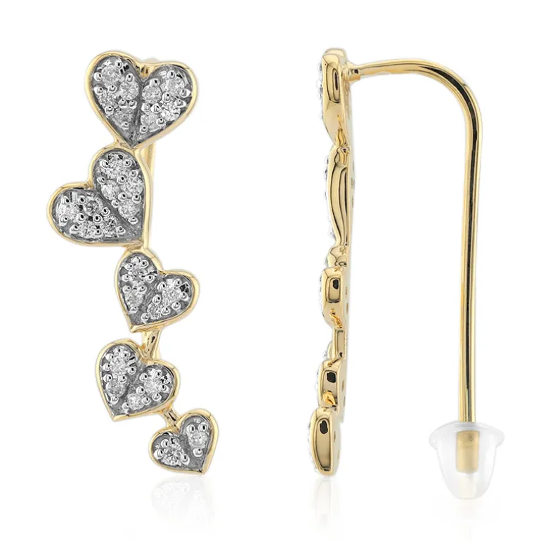 Entdecken Sie die romantische Anziehungskraft dieser Tropfenohrringe mit Herzmuster aus 9 Karat Gold. Jedes Stück ist mit funkelnden SI1 (G) Diamanten von insgesamt 0,28 Karat verziert, die sorgfältig in einer kaskadenartigen Folge von Herzformen angeordnet sind. Die Präzision der runden Brillanten unterstreicht ihren exquisiten Schimmer im warmen Glanz des 375er Goldes, das etwa 1,9 Gramm wiegt. Diese Ohrringe sind ideal, um jedem Outfit einen Hauch von Eleganz zu verleihen. Sie sind ein wertvolles Geschenk oder ein luxuriöses persönliches Vergnügen, perfekt für besondere Anlässe oder um dem Alltag Glanz zu verleihen.