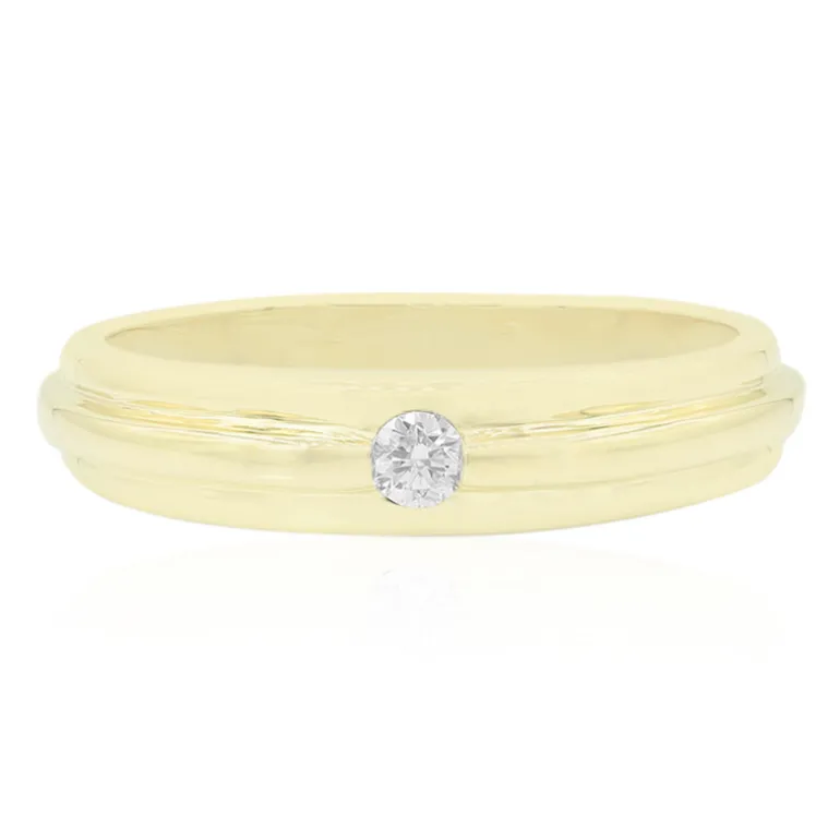 Entdecken Sie die schlichte Eleganz dieses raffinierten Rings aus 9-karätigem Gold, dessen Herzstück ein Brillant von 0,064 ct. in Reinheit SI1 ist. Der klassische Glanz des Diamanten im Rundschliff wird durch das glatte, glänzende Band betont, das aus ca. 2,28 g feinstem Gold gefertigt ist. Der Ring mit den Maßen 21×20 mm verleiht einem zeitlosen Design eine moderne Note und ist damit eine tadellose Wahl für den Alltag und besondere Anlässe. Kombinieren Sie dieses Schmuckstück sowohl mit legeren als auch mit formellen Outfits, um Ihrem Ensemble einen Hauch von Raffinesse zu verleihen.