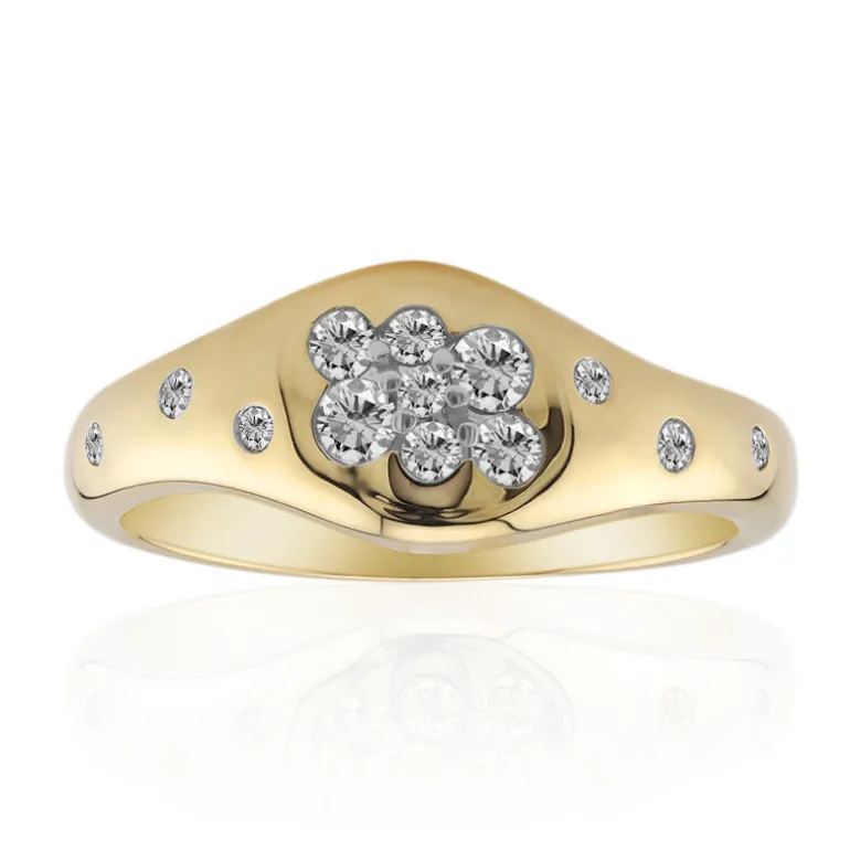Dieser atemberaubende Ring aus 9-karätigem Gold zeigt eine Konstellation von Diamanten mit der Reinheit SI1 von insgesamt 0,258 Karat, die so angeordnet sind, dass sie gemeinsam glänzen. Das komplizierte Design besteht aus einem Strauß funkelnder Edelsteine, die in einem schlanken Goldband mit einem Gewicht von ca. 2,5 Gramm gefasst sind. Vielseitig und zeitlos passt er sowohl zur Bürokleidung als auch zur Abendgarderobe und ist damit ein ideales Geschenk oder eine wertvolle Ergänzung für jede Schmucksammlung.