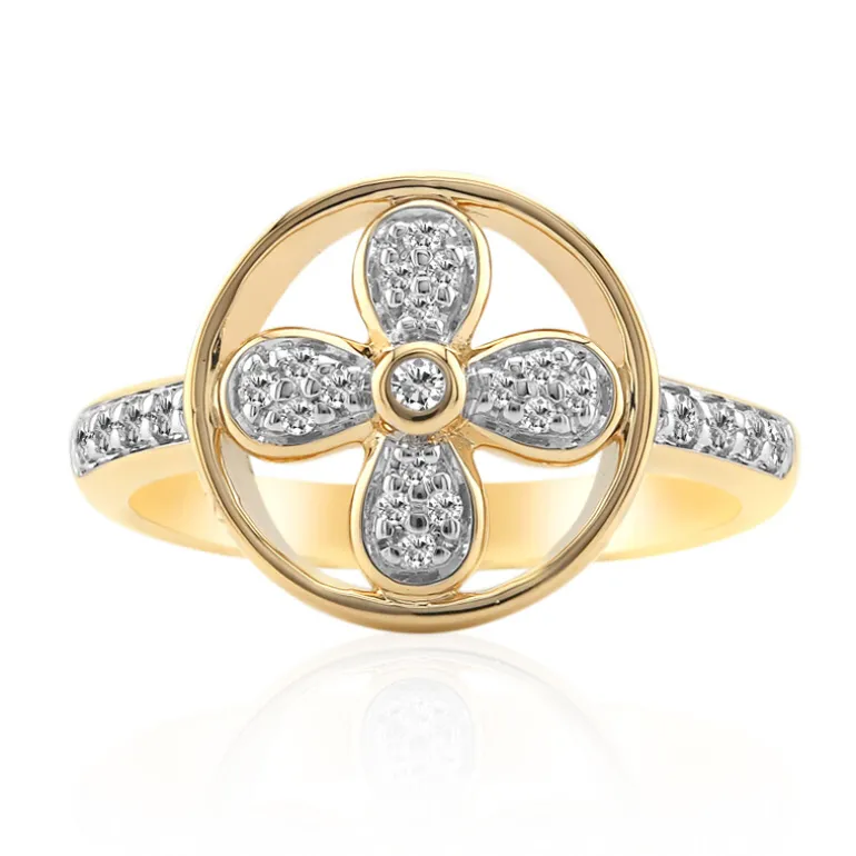 Entdecken Sie die Harmonie von Natur und Luxus mit diesem floral inspirierten Goldring. Dieser Ring aus 375er Gold mit einem Gewicht von ca. 2,8 Gramm besticht durch sein raffiniertes Design und ein Gesamtgewicht von 0,186 Karat. Die Diamanten mit dem Brillantschliff SI1 (G) sind sorgfältig platziert und bilden eine zarte Blüte, die Wachstum und Neubeginn symbolisiert. Der Ring ist eine tadellose Wahl für legere Eleganz und besondere Anlässe und passt zu einer Reihe von Stilen, vom klassischen Kleid bis zum Business-Outfit.