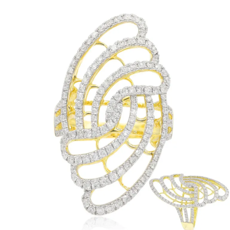 Dieser elegante Ring aus 9-karätigem Gold besticht durch sein raffiniertes Design mit insgesamt 166 Diamanten im Brillantschliff mit einem Gewicht von 1,219 Karat. Die glitzernden Diamanten mit der Reinheit SI1 sind sorgfältig in ein Muster gefasst, das zwischen der Wärme des Goldes und dem Funkeln der Steine spielt. Dieses auffällige Schmuckstück ist perfekt für besondere Anlässe und passt hervorragend zu einem Abendkleid oder einem eleganten Cocktailkleid.