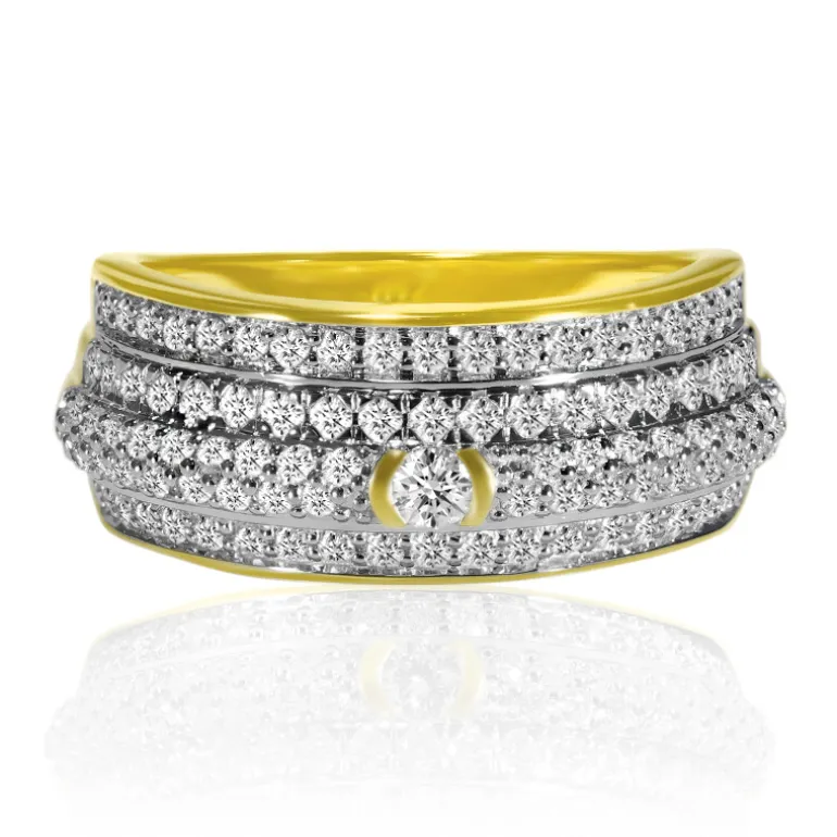 Entdecken Sie die Faszination dieses atemberaubenden Rings aus 14-karätigem Gold mit einer makellosen Reihe von Diamanten der Reinheit SI1, die das Licht bei jeder Bewegung einfangen. Die Diamanten im Brillantschliff mit einem Gesamtgewicht von 0,846 Karat sind sorgfältig gefasst, um eine schillernde Ausstrahlung zu erzeugen. Das beträchtliche Goldgewicht von 4,92 Gramm verleiht dem Ring ein luxuriöses Gefühl. Dieses opulente Schmuckstück eignet sich perfekt für besondere Anlässe und passt hervorragend zu einem Abend- oder Cocktailkleid, das Ihrem Ensemble einen Hauch von Raffinesse verleiht.