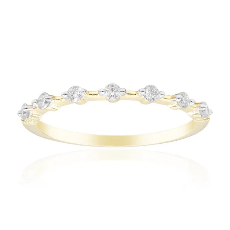 Entdecken Sie die Eleganz dieses Goldrings mit sieben runden Diamanten im Brillantschliff SI1. Das schmale Band aus 375er Gold eignet sich perfekt zum Stapeln oder für einen minimalistischen Einzel-Look. Dieser Ring eignet sich sowohl für legere als auch für formelle Anlässe und verleiht jedem Outfit einen dezenten Glanz. Zeitloser Stil und Vielseitigkeit mit diesem exquisiten Stück.