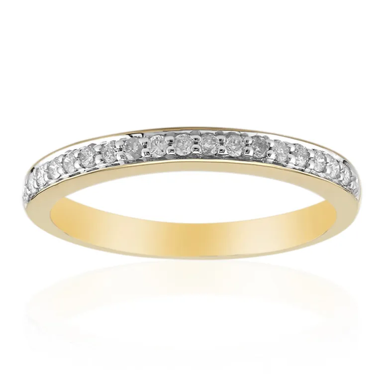 Entdecken Sie die Raffinesse an Ihrem Finger mit diesem zarten Ring aus 9 Karat Gold, der mit 19 schimmernden Diamanten der Reinheit SI1 von insgesamt 0,19 Karat besetzt ist. Jeder präzise geschliffene Stein reflektiert das Licht wunderschön und unterstreicht den luxuriösen Reiz. Mit seinem schlanken Profil und seinem eleganten Design verleiht dieser Ring jedem Outfit einen Hauch von Klasse und ist damit die ideale Wahl sowohl für den eleganten Alltag als auch für besondere Anlässe. Die klassische Mischung aus hochwertigen Diamanten und warmem Gold macht ihn zu einer zeitlosen Ergänzung Ihrer Sammlung.