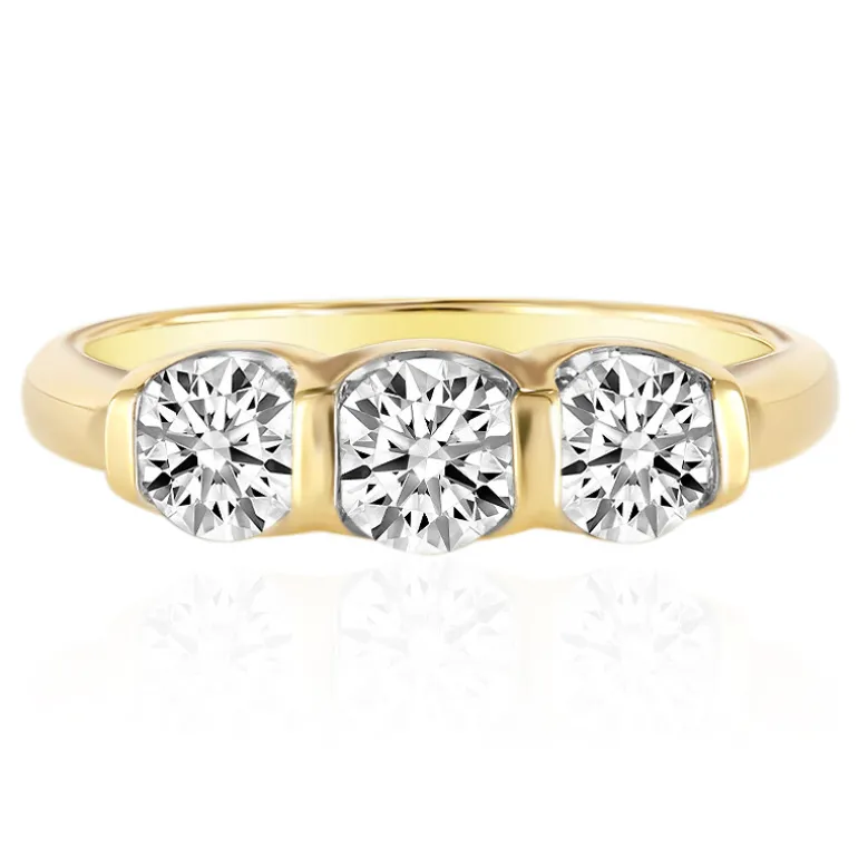 Dieser raffinierte Ring aus 585er Gold glänzt mit drei Diamanten im Brillantschliff von insgesamt 1,08 Karat, die in einem anmutigen Drilling gefasst sind. Mit einem Gewicht von ca. 2,8 Gramm wurde jeder Stein sorgfältig nach seiner Reinheit (SI1) und Farbe (G) ausgewählt, um eine blendende Darstellung zu gewährleisten. Dieser Ring ist ideal für Verlobungen, Jahrestage oder einfach nur als Schmuckstück. Er passt sowohl zur Abendgarderobe als auch zur Alltagskleidung und verspricht, ein geschätzter Bestandteil jeder Schmucksammlung zu werden.