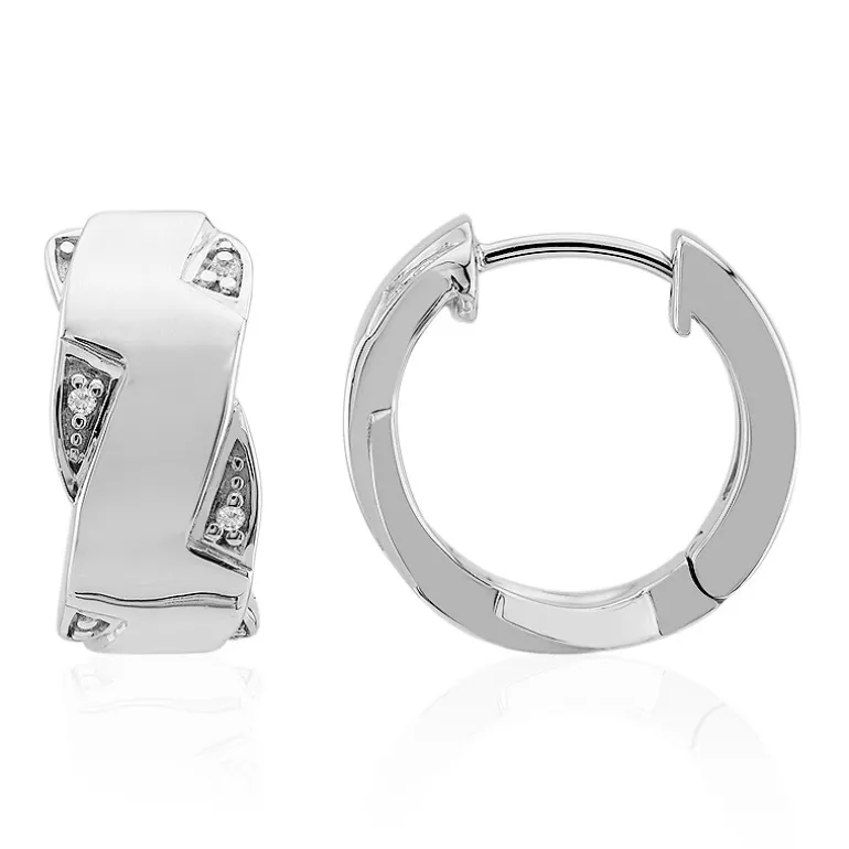 Entdecken Sie das Funkeln dieser schicken Creolen, die von sechs Diamanten der Reinheit SI1 und der Farbe G mit einem Gesamtkaratgewicht von 0,032 ct geziert werden. Gefertigt aus glänzendem 925er Sterlingsilber und mit einem Gewicht von etwa 5,6 Gramm verleihen diese Ohrringe jedem Outfit einen Hauch von Raffinesse. Sie eignen sich perfekt für den Alltag oder einen besonderen Abend und werden ein fester Bestandteil Ihrer Schmucksammlung sein.