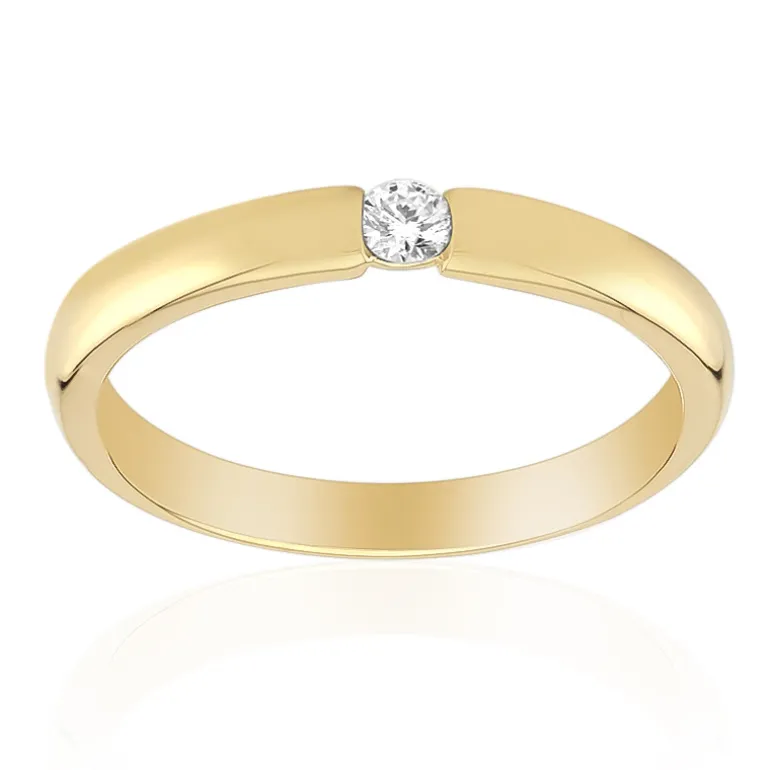 Entdecken Sie die schlichte Eleganz dieses raffinierten Rings mit einem runden Diamanten im Brillantschliff von 0,085 ct (SI1). Gefertigt aus hochwertigem 925er Sterlingsilber und mit einem warmen, goldfarbenen Glanz überzogen, verbindet dieser Ring modernen Minimalismus mit klassischem Stil. Der sanfte Schimmer des Diamanten macht ihn zu einem vielseitigen Accessoire – ideal für das tägliche Tragen oder für besondere Anlässe. Kombinieren Sie ihn mit Ihrer Geschäftskleidung für einen eleganten Look oder mit Abendkleidung für einen Hauch von Glamour. Das schlanke Design eignet sich perfekt zum Stapeln oder zum Tragen als Einzelstück.