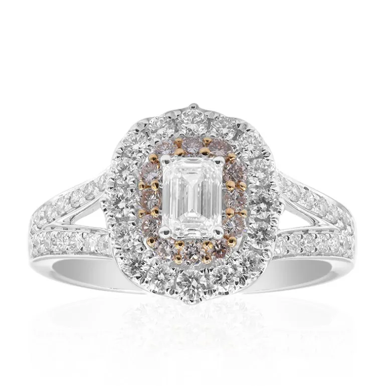 Entdecken Sie die Eleganz dieses atemberaubenden OCTAGON-Diamantrings, der fachmännisch aus 18 Karat Rosé- und Weißgold gefertigt ist. Mit einem 0,4-karätigen Diamanten im Oktagon-Schliff in der Mitte, umgeben von 12 rosafarbenen und 48 weißen Diamanten im Brillantschliff, schimmert dieses Schmuckstück mit einem Gesamtkaratgewicht von 1,14 kt. Dieser exquisite Ring eignet sich perfekt für besondere Anlässe und passt hervorragend zu formellen Anlässen und verleiht jedem Ensemble einen Hauch von Eleganz.