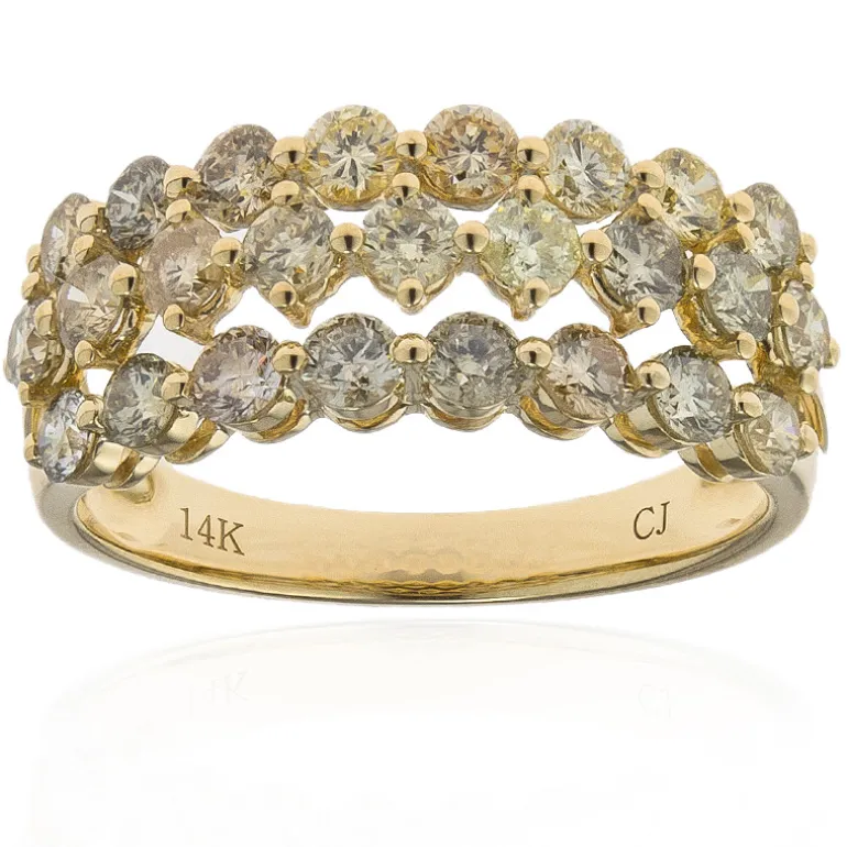 Entdecken Sie Eleganz mit diesem exquisiten Fancy Diamond Gold Ring von CIRARI. Er ist aus 14-karätigem Gelbgold gefertigt und verfügt über 25 SI2 Fancy-Diamanten mit einem Gesamtgewicht von 1,63 Karat in einem atemberaubenden runden Brillantschliff. Er eignet sich perfekt, um jedem Ensemble einen Hauch von Glanz zu verleihen, egal ob es sich um ein raffiniertes Abendkleid oder ein schickes Freizeitoutfit handelt. Ideal für besondere Anlässe oder als Blickfang.