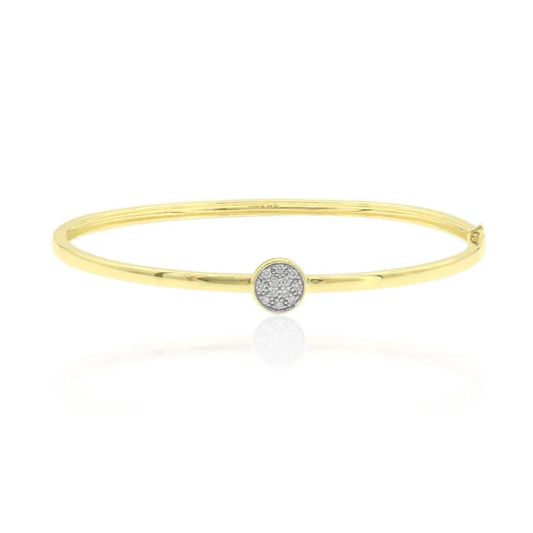 Entdecken Sie die minimalistische Eleganz dieses Armreifs aus 9 Karat Gold, der mit einem Cluster aus 12 Diamanten der Reinheit SI2 und Farbe G von insgesamt 0,168 Karat besetzt ist. Der 7,58 g schwere Armreif wurde mit Präzision gefertigt und glänzt mit einem klassischen runden Brillantschliff. Er ist ein vielseitiges Schmuckstück für den Tag und den Abend. Betonen Sie Ihr Handgelenk mit der zeitlosen Anziehungskraft dieses feinen Schmuckstücks, das sich perfekt eignet, um sowohl lässigen als auch formellen Ensembles einen Hauch von Luxus zu verleihen.