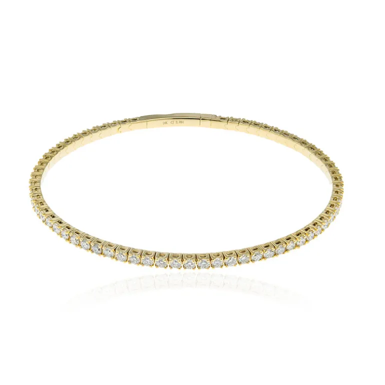 Dieses schillernde Armband aus 14 Karat Gelbgold von CIRARI ist mit 64 funkelnden Diamanten der Reinheit SI2 von insgesamt 2,891 Karat besetzt und verkörpert Luxus. Jeder einzelne Diamant, der auf eine runde Brillantform von ca. 2,2 mm geschliffen ist, fängt das Licht auf wunderbare Weise ein. Der Umfang des Armbands von 17,5 cm sorgt für einen bequemen Sitz und macht es zu einem idealen Accessoire für formelle Anlässe und den eleganten Alltag. Kombinieren Sie es mit Ihrer Lieblingsabendgarderobe, um Ihren Stil zu unterstreichen. Sein zeitloses Design und sein glänzender Reiz machen es zu einer exquisiten Ergänzung für jede Schmucksammlung.