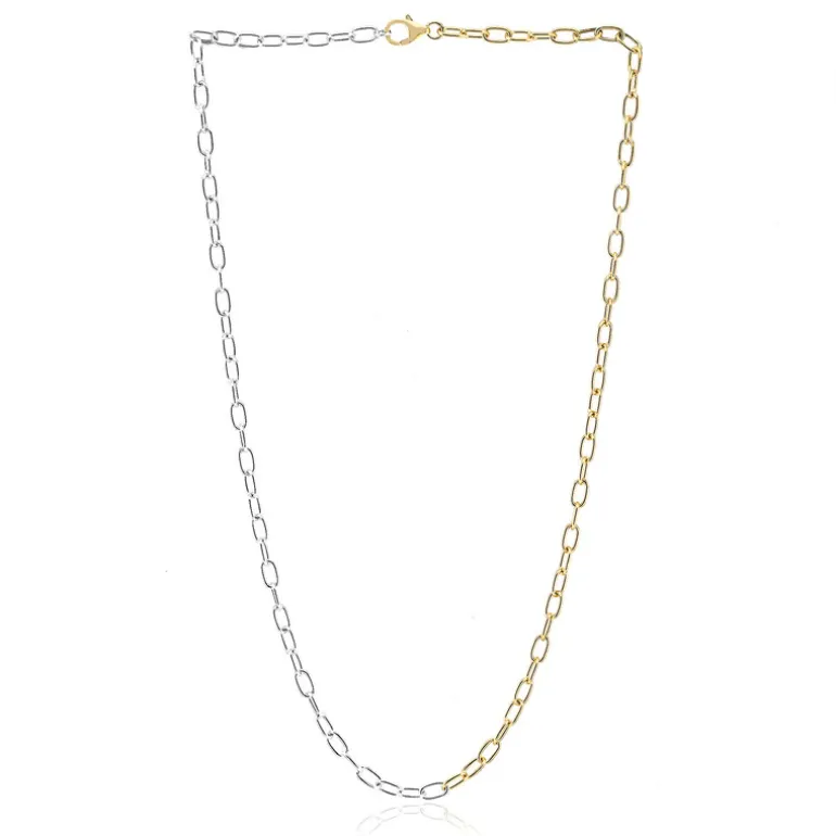 Diese elegante zweifarbige Halskette besteht aus 925er Sterlingsilber mit einer luxuriösen Goldplattierung und wiegt ca. 7,04 g. Mit einer Länge von 45,5 cm ist sie vielseitig tragbar und eignet sich sowohl für den Alltag als auch für besondere Anlässe. Kombinieren Sie sie mit einer schicken Bluse oder einem klassischen Abendkleid, um Ihren Stil mühelos aufzuwerten. Eine perfekte Wahl für anspruchsvolle Schmuckliebhaber, die zeitlose Raffinesse suchen.