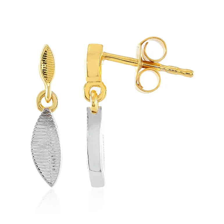 Entdecken Sie die nahtlose Verbindung von moderner Eleganz und von der Natur inspiriertem Design mit diesen vergoldeten Ohrringen aus 925er Sterlingsilber aus der MONOSONO COLLECTION. Mit einem einzigartigen blattförmigen Tropfen schimmern diese Ohrringe mit einem subtilen texturierten Finish und verleihen jedem Outfit einen Hauch von Raffinesse. Sie sind leicht und vielseitig und eignen sich sowohl für den Übergang von Tag zu Abend als auch für besondere Anlässe.