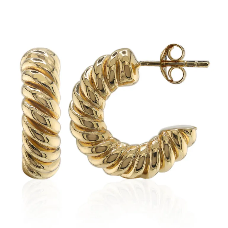 Gönnen Sie sich die zeitlose Eleganz unserer Ohrringe im Spiraldesign, die aus hochwertigem 925er Sterlingsilber mit einer luxuriösen Goldbeschichtung gefertigt sind. Mit einem Gewicht von ca. 12,47 Gramm bieten diese Ohrringe ein angenehmes, aber dennoch solides Tragegefühl. Das verschlungene Spiralmuster verleiht ihnen einen Hauch von Raffinesse und macht sie zu einer idealen Wahl sowohl für den Alltag als auch für besondere Anlässe. Sie sind perfekt, um Ihrem Ensemble einen Hauch von goldenem Glamour zu verleihen und werden mit Sicherheit zu einem geschätzten Teil Ihrer Schmucksammlung.