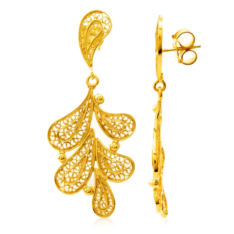 Entdecken Sie die Faszination dieser 57 mm großen Joias do Paraíso-Ohrringe aus glänzendem 925er Sterlingsilber mit elegantem Vermeil-Finish. Ihr kompliziertes Design fängt das Licht wunderschön ein und verleiht jedem Ensemble einen Hauch von Raffinesse. Perfekt für besondere Anlässe oder zum Aufpeppen alltäglicher Looks, kombiniert mit einem schlichten Anhänger für ein schickes Statement.