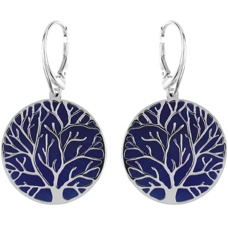 Entdecken Sie die bezaubernde Anziehungskraft unserer Tree of Life-Ohrringe, die sorgfältig aus 925er Sterlingsilber gefertigt sind. Mit einem Gewicht von ca. 2,2 g und einem atemberaubenden Kontrast aus Silber und leuchtend blauen Titaneinlagen sind diese 43 mm großen Ohrringe eine wunderbare Mischung aus von der Natur inspirierter Eleganz und modernem Design. Das verschlungene Verzweigungsmuster vor dem kräftigen Hintergrund macht sie zu einem fesselnden Accessoire, das sowohl zu legerer als auch zu formeller Kleidung passt. Diese Ohrringe sind ein Muss für jede Schmucksammlung und eignen sich perfekt für alle, die künstlerischen Ausdruck und Stil schätzen.