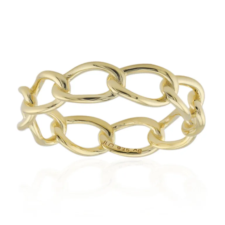 Genießen Sie die schlichte Raffinesse dieses eleganten Rings aus vergoldetem Silber. Gefertigt aus 925er Sterlingsilber und mit einem polierten, ineinander verschlungenen Gliederdesign, strahlt dieses Stück modernen Charme aus. Sein geringes Gewicht von 1,2 g macht ihn zu einem bequemen Begleiter für den Alltag. Dieser Ring lässt sich perfekt mit legeren oder formellen Outfits kombinieren und verleiht jedem Anlass einen Hauch von Luxus.