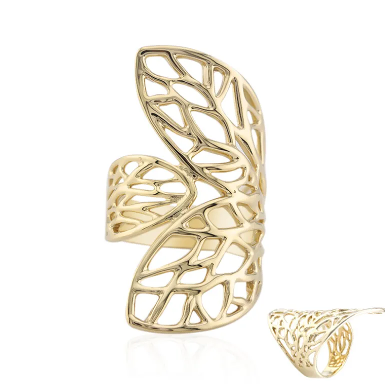 Blatt-Design Vergoldeter Sterling Silber Ring