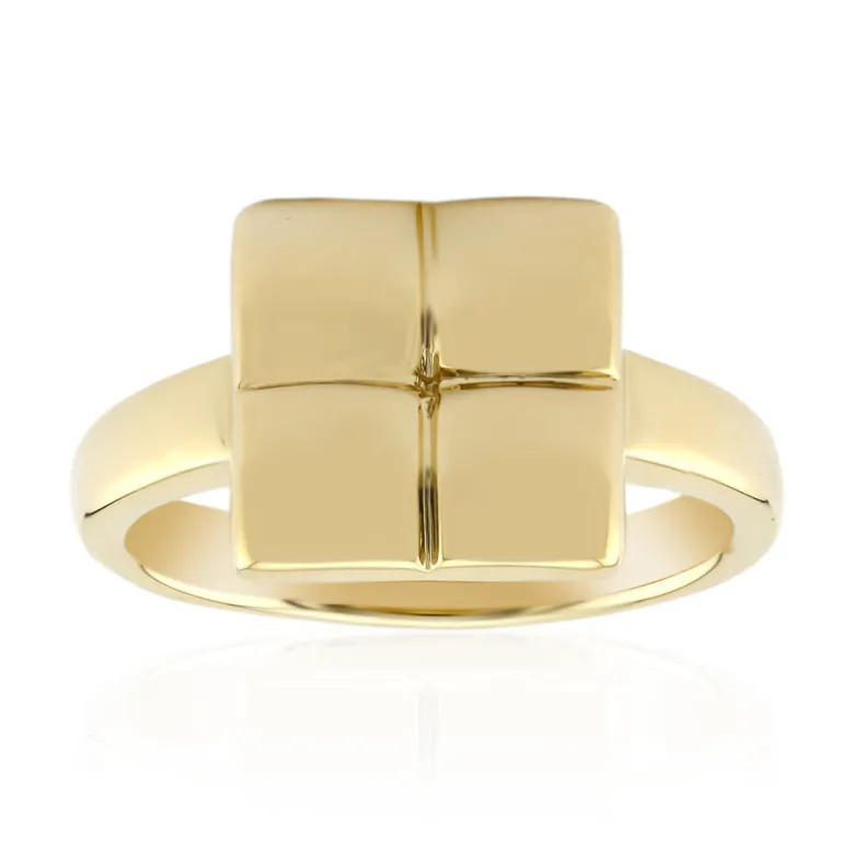 Wir präsentieren ein atemberaubendes Schmuckstück, das Schlichtheit mit einem Hauch von Luxus verbindet. Dieser schicke Ring ist aus 925er Sterlingsilber gefertigt und mit einer aufwendigen Goldplattierung verziert. Die glatte, spiegelnde Oberfläche und das minimalistische, aber kühne Design von 21×19 mm machen ihn zu einer vielseitigen Ergänzung sowohl für den Alltag als auch für besondere Anlässe. Ob zu einem klassischen Cocktailkleid oder einem eleganten Business-Anzug, dieser Ring wird Ihren Look mit seinem eleganten Glanz aufwerten.