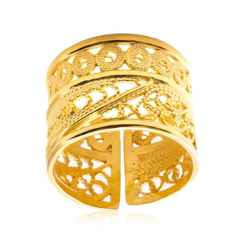 Erleben Sie die Anziehungskraft des Joias do Paraíso Gold-Plated Silver Ring. Der aus 925er Sterlingsilber gefertigte und elegant vergoldete Ring wiegt ca. 4,7 g und verfügt über verschlungene Muster, die ihm einen Hauch von Raffinesse verleihen. Er eignet sich sowohl für den Alltag als auch für besondere Anlässe und ist ein zeitloses Schmuckstück, das sowohl zu schicken Outfits als auch zu formellen Anlässen passt.