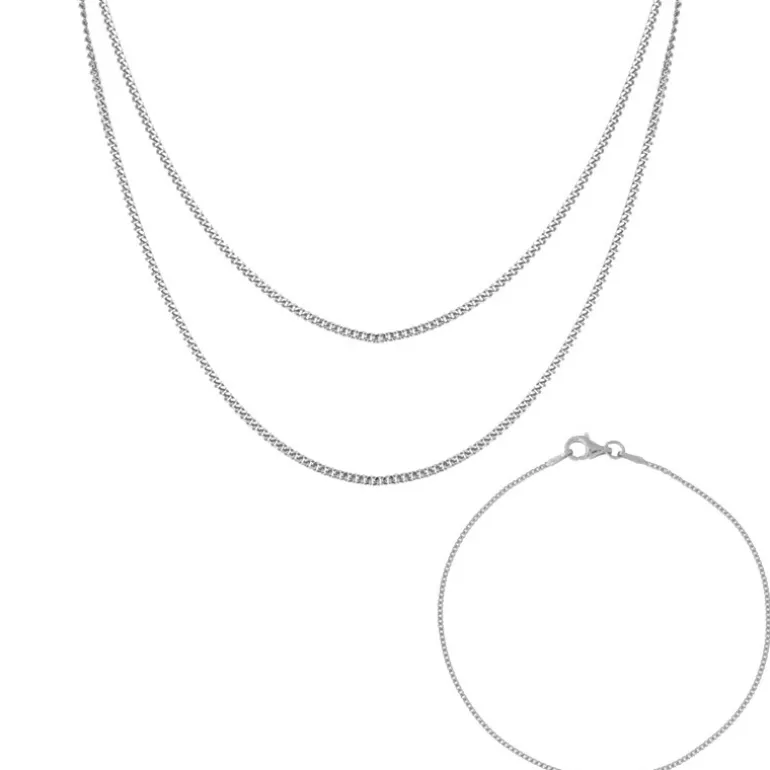 Entdecken Sie die zeitlose Eleganz unseres Sterling-Silber-Kettensets, das aus reinem 925er Silber mit einem Gewicht von ca. 2,743 Gramm gefertigt ist. Die vielseitige Kollektion umfasst zwei unterschiedlich lange Ketten, 45 cm und 50 cm, die durch ein 19 cm langes Armband ergänzt werden, das sich perfekt zum Übereinanderlegen oder für einen schlichteren Look einzeln tragen lässt. Diese Schmuckstücke sind sowohl für die Freizeit als auch für formelle Anlässe geeignet und lassen sich mühelos mit einer Vielzahl von Outfits kombinieren – vom Tag bis zum Abend.