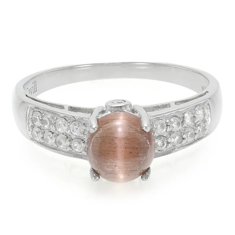 Entdecken Sie den einzigartigen Charme dieses Scapolith-Katzenaugenrings mit einem 7 mm großen, runden Cabochon aus Brasilien, eingebettet in platiniertes 925er Sterlingsilber. Der zentrale Stein wird von 18 funkelnden Zirkonen aus Kambodscha mit einem Gesamtgewicht von 0,419 ct ergänzt, die dem Schmuckstück einen Hauch von Brillanz verleihen. Mit einem Gesamtgewicht von 1,609 ct ist dieser Ring ein prächtiges Schmuckstück für legere und formelle Anlässe. Mit seinem zartrosa Farbton und seiner reflektierenden Ausstrahlung ist er ein Schmuckstück, das Raffinesse ausstrahlt und jedes Ensemble ergänzt.