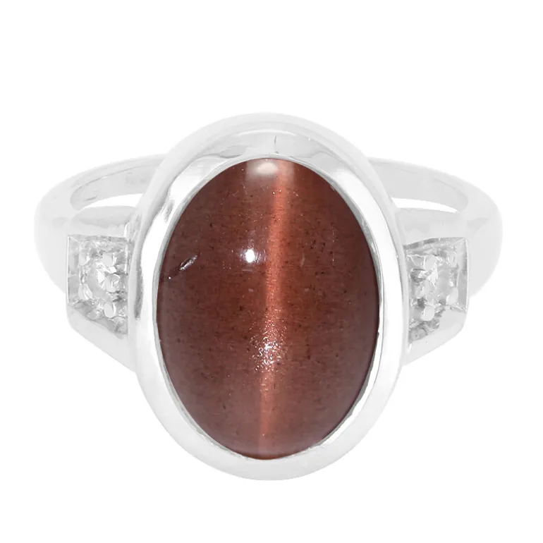 Entdecken Sie die Faszination des natürlichen brasilianischen Katzenaugen-Skapoliths mit diesem atemberaubenden Ring aus Sterlingsilber. Mit einem fesselnden ovalen Cabochon von 6,57 Karat in der Mitte und zwei weißen Topas-Akzenten von insgesamt 0,06 Karat kombiniert dieses Schmuckstück moderne Eleganz mit klassischem Charme. Die warmen, erdigen Töne des Hauptsteines machen ihn vielseitig für den Alltag oder besondere Anlässe tragbar. Dieser Ring ist ein Muss für jede Schmucksammlung und verspricht, Ihr Ensemble mit seiner subtilen Brillanz aufzuwerten.