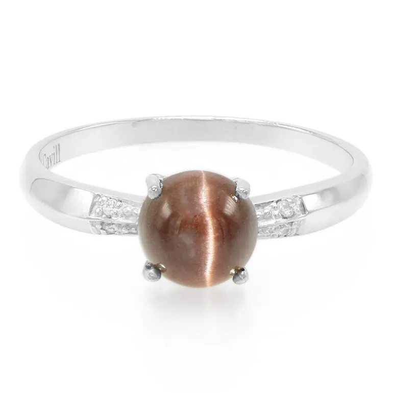 Entdecken Sie die bezaubernde Anziehungskraft dieses Silberrings mit Katzenaugen-Skapolith. Mit einem fesselnden runden Cabochon-Skapolit aus Brasilien, umgeben von vier funkelnden Zirkon-Akzenten aus Kambodscha, ist dieser Ring eine perfekte Mischung aus Eleganz und Mystik. Der aus platiniertem Sterlingsilber gefertigte Ring passt sowohl zu legeren als auch zu formellen Outfits und verleiht jedem Anlass einen Hauch von Charme.