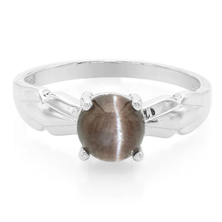 Entdecken Sie Eleganz mit diesem schicken Katzenaugen-Skapolit-Ring aus Silber. Der runde Cabochon aus Brasilien mit einem Gewicht von 1,28 Karat zeigt einen fesselnden Katzenaugen-Effekt. Der Ring ist aus platiniertem 925er Sterlingsilber gefertigt und eignet sich perfekt für den Übergang von Tag zu Abend. Kombinieren Sie ihn mit Freizeitkleidung für ein subtiles Highlight oder verwenden Sie ihn, um der Abendgarderobe Raffinesse zu verleihen. Ideal für jede Schmuckliebhaberin.