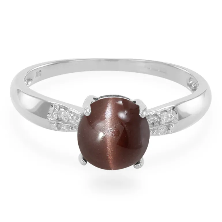 Unser brasilianischer Cat’s Eye Scapolite Silberring ist ein fesselndes Wunderwerk mit einem runden Cabochon von 1,83 Karat in der Mitte, der mit geheimnisvollem Charme schimmert. Flankiert von weißen Topasen im Brillantschliff mit einem Gesamtgewicht von 0,023 Karat, verleiht dieses Band aus 925er Sterling Silber mit einem Gewicht von ca. 1,37 g dem Ensemble einen luxuriösen Touch. Die runden Topase im Brillantschliff bringen die tiefen Farbtöne des Skapolithen wunderbar zur Geltung. Dieses Schmuckstück ist eine elegante Ergänzung für jede Schmucksammlung und ein auffälliges Accessoire für Abendveranstaltungen oder für den anspruchsvollen täglichen Gebrauch.