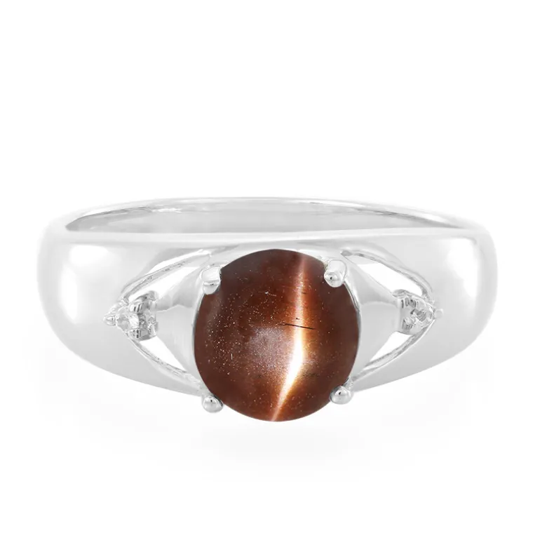 Entdecken Sie die Faszination des Katzenaugeneffekts mit diesem atemberaubenden Skapolitring. Ein runder Cabochon von 1,42 Karat in warmen Farben ist das Herzstück des Rings, während Akzente aus strahlendem Weißtopas für einen Hauch von Glanz sorgen. Der aus 925er Sterlingsilber gefertigte Ring ist sowohl raffiniert als auch faszinierend. Er ist das perfekte Accessoire, um jedem Ensemble einen Hauch von Eleganz zu verleihen, und eignet sich besonders für Abendveranstaltungen oder als unverwechselbare Ergänzung zu Ihrem Alltagsstil.