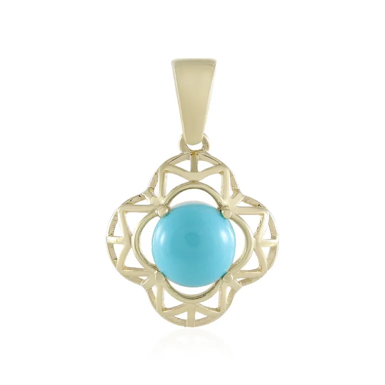 Entdecken Sie die Eleganz dieses exquisiten Dornröschen-Türkisanhängers mit einem runden Cabochon von 0,81 Karat aus den USA, gefasst in 375er Gelbgold. Das verschlungene Design bietet einen zeitlosen Charme und macht ihn zu einem perfekten Accessoire für legere und formelle Anlässe. Kombinieren Sie ihn mit jedem Ensemble, um ihm einen Hauch von Raffinesse zu verleihen und jeden Moment unvergesslich zu machen.