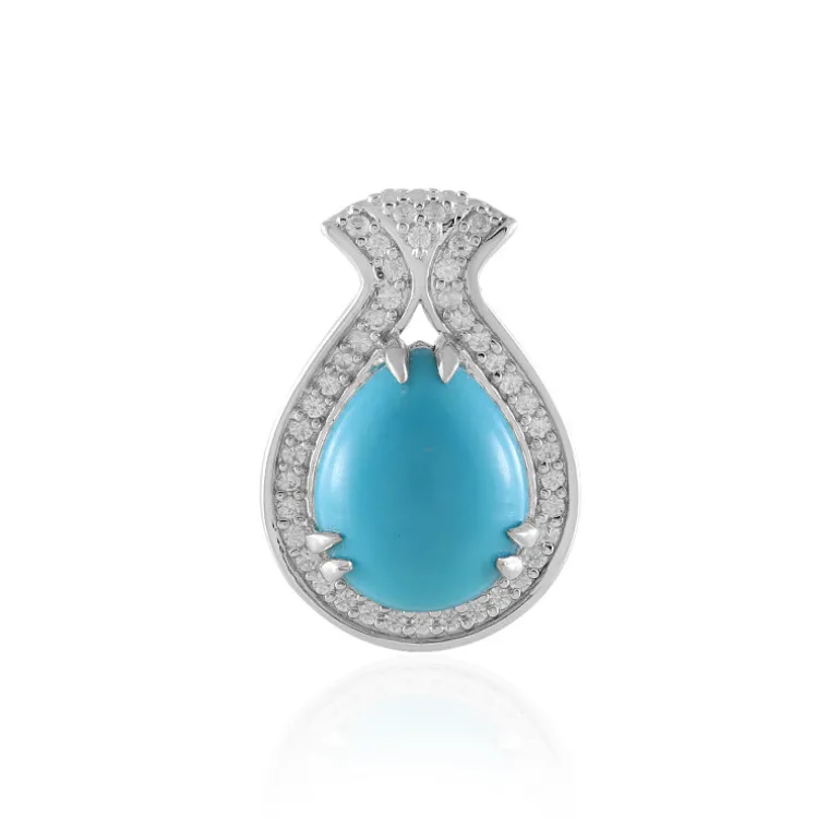 Entdecken Sie Eleganz mit diesem bezaubernden Sleeping Beauty Türkisanhänger. Er ist mit einem 2,601-karätigen Teardrop-Cabochon aus den USA besetzt, der von 45 funkelnden Zirkon-Akzenten umgeben ist. Der Anhänger ist aus 925er Sterlingsilber gefertigt und wertet mit seinem anmutigen Design jedes Outfit auf. Perfekt für ein schickes Abendoutfit oder zur Aufwertung des Alltags. Kombinieren Sie ihn mit einer Silberkette für zeitlose Raffinesse.
