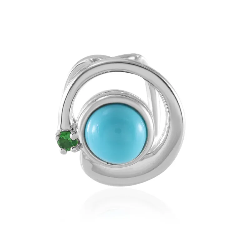 Lassen Sie sich von der himmelblauen Eleganz dieses Sterling Silber Anhängers verzaubern, der einen faszinierenden 0,45ct Dornröschen Türkis Cabochon mit einem leuchtenden 0,027ct Tsavorit aus Tansania kombiniert. Der aus hochwertigem 925er Sterling Silber gefertigte Anhänger mit den Maßen 11×11 mm ist das Herzstück Ihres Ensembles. Der runde Türkis-Cabochon, dessen Farbe an einen ruhigen, azurblauen Himmel erinnert, wird durch das lebhafte grüne Funkeln des Tsavorits akzentuiert und ist somit ein ideales Accessoire sowohl für legere als auch für formelle Anlässe. Ob Sie sich zum Brunch oder zu einer Abendgala schick machen, dieser Anhänger verleiht Ihrem Look einen Hauch von Gelassenheit und Raffinesse.