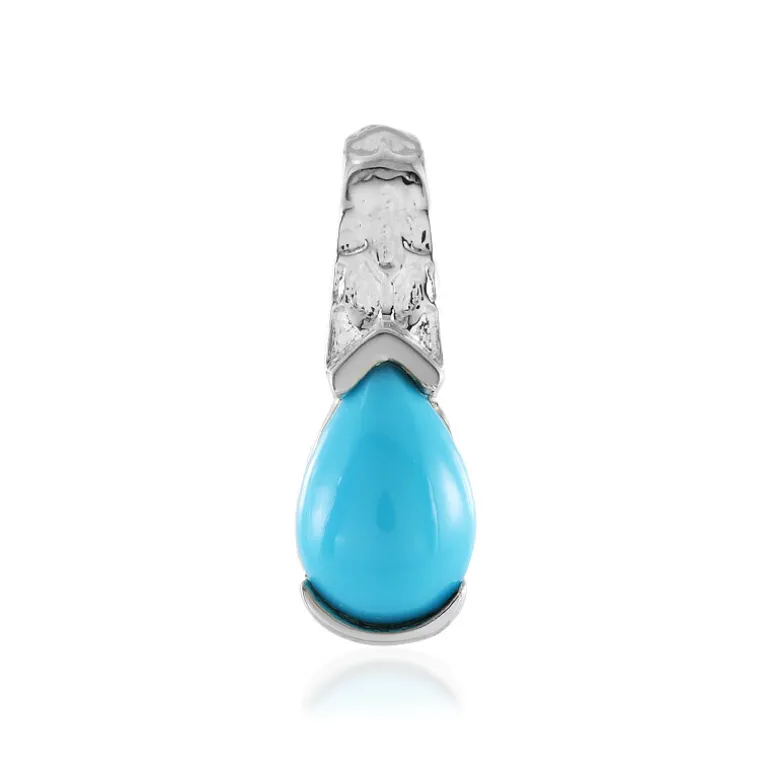 Entdecken Sie die Anziehungskraft von Amerikas berühmtem Dornröschen-Türkis mit diesem charmanten Anhänger. Der tropfenförmige Cabochon mit einem Gewicht von 0,99 Karat ist in platiniertes 925er Sterling Silber eingebettet. Sein lebhafter himmelblauer Farbton, ergänzt durch eine schlanke Silhouette, macht ihn zu einem vielseitigen Schmuckstück, das sowohl im Alltag als auch zu besonderen Anlässen getragen werden kann. Verleihen Sie Ihrem Ensemble einen Hauch von südwestlicher Eleganz mit diesem bezaubernden Schmuckstück aus den USA.