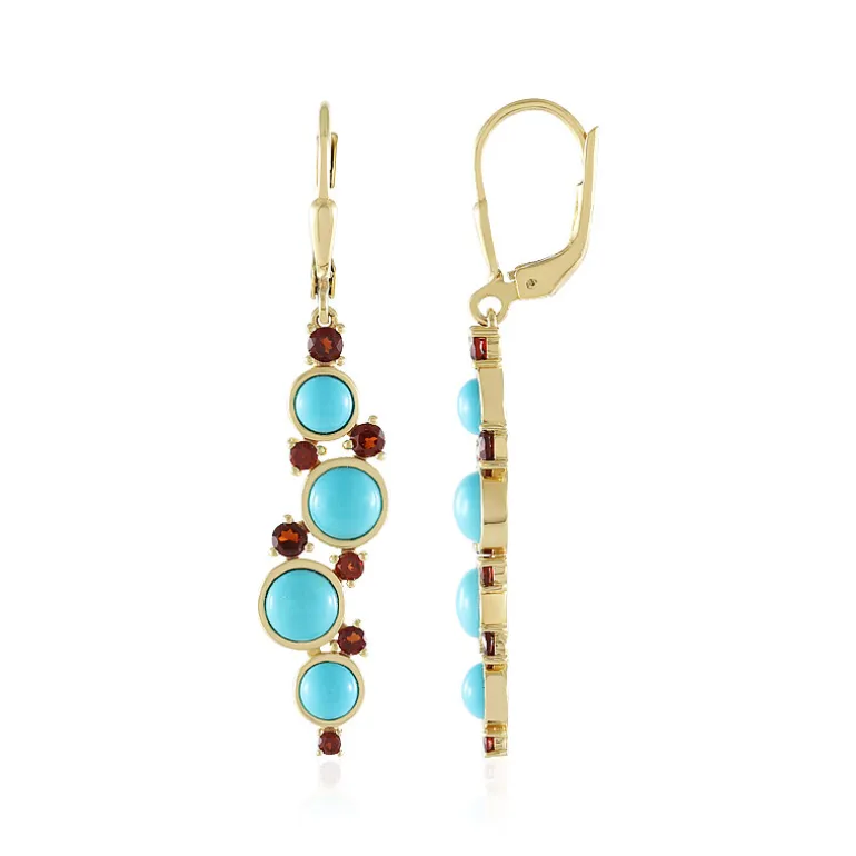Entdecken Sie die Eleganz dieser atemberaubenden Ohrringe mit Dornröschen-Cabochons aus Türkis und Mosambik-Granaten. Sie sind aus vergoldetem Sterlingsilber gefertigt und bilden mit ihren leuchtenden Farben einen fesselnden Kontrast, der jedes Outfit aufwertet. Mit ihrem raffinierten Design und den exquisiten Materialien sind diese Ohrringe sowohl für legere als auch für formelle Anlässe geeignet und verleihen ihnen einen Hauch von Luxus.