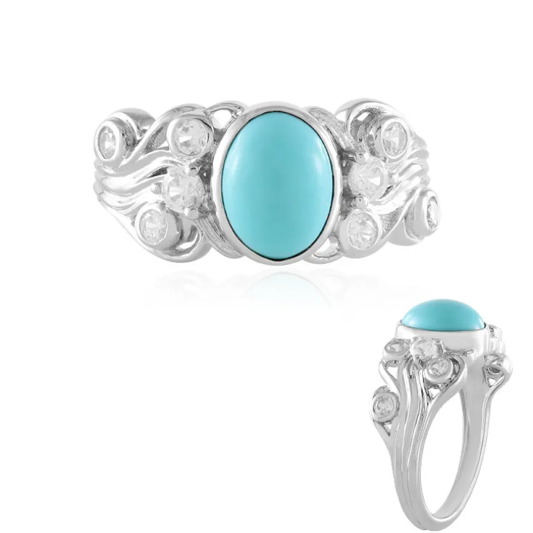 Entdecken Sie Eleganz mit diesem exquisiten Ring aus Dornröschen-Türkis, der einen atemberaubenden ovalen Cabochon von 1,26 Karat aus den USA enthält. Das mit funkelnden Zirkonen aus Kambodscha geschmückte Stück aus platiniertem 925er Sterlingsilber wiegt 2,12 g und hat ein Gesamtkaratgewicht von 1,71 ct. Perfekt für legere und formelle Anlässe. Kombinieren Sie ihn mit Ihrer Lieblingskleidung und verleihen Sie ihr einen Hauch von Raffinesse und Charme.
